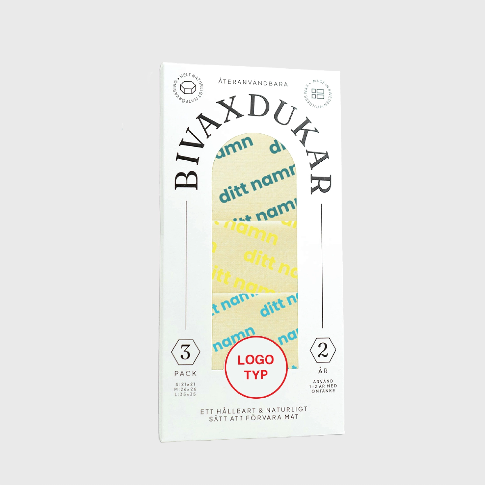 | Material: | Bomullstyg, bivax, tallkåda och jojoba-olja. Tillverkade i Sverige. |